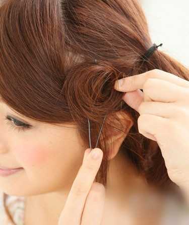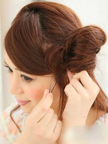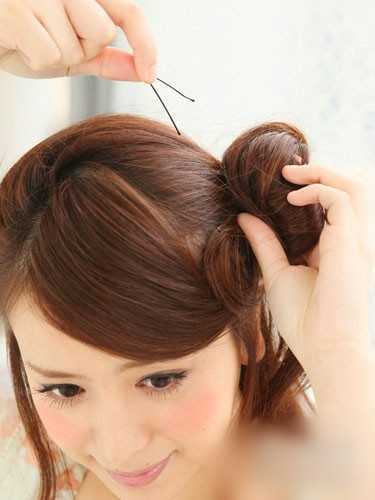 步骤二:用一个发夹将刘海做成的圈圈固定。