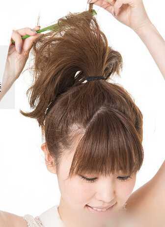 步骤二:用梳子将马尾一缕一缕打毛,打理出蓬松的效果。