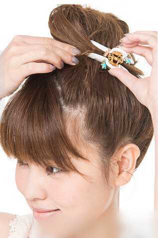 步骤三:将发尾以顺时针方向缠绕塞进发圈。