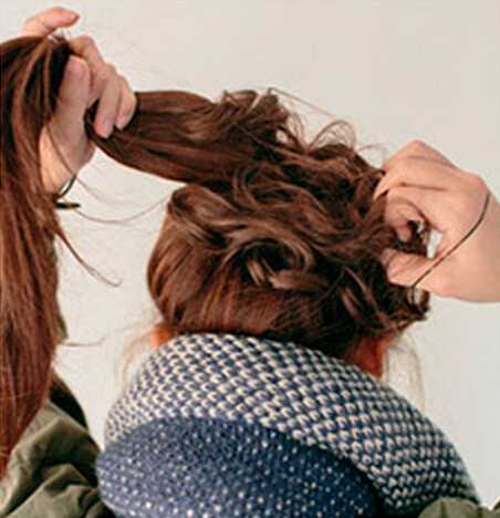 step1、首先,要将头发扎成高马尾,然后假发套在马尾上,如果觉得松就多绕两圈;