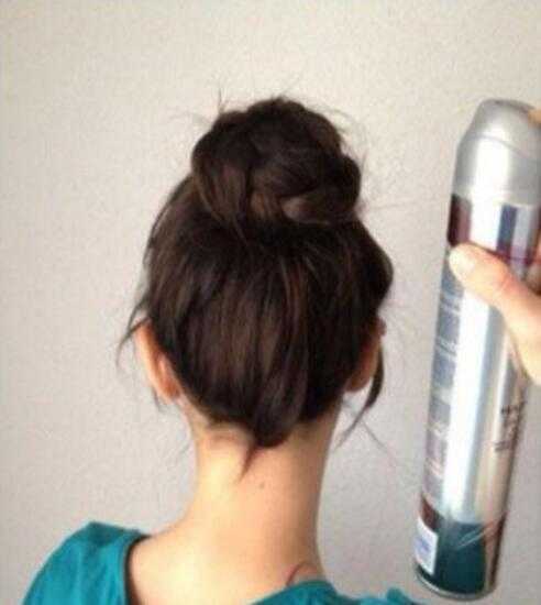 step10、喷点定型喷雾,让你的包子头造型更持久哦!