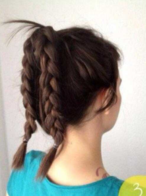 step3、把马尾分成两份,分别编麻花辫,编好用橡皮筋扎好;