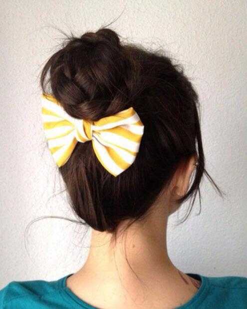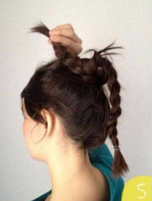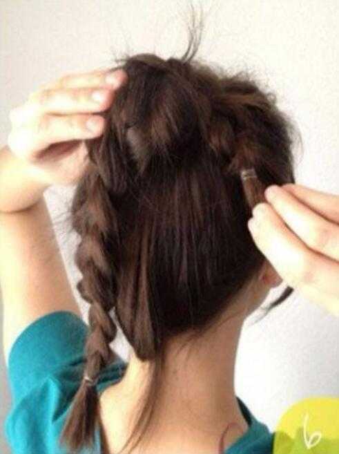 很青春也很甜美的包子头,别上蝴蝶结发饰很减龄,这款包子头的扎法也很独特,我们可以看到包子头是经过编发再加工完成的。