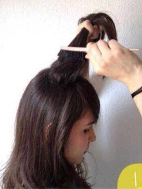 step1、用密齿梳对头顶的头发进行倒刮处理;