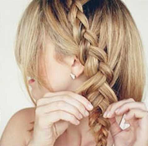 step2、用分好的头发编三股麻花辫;