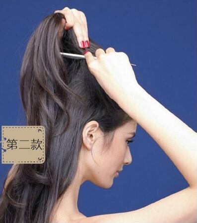 第四步》》》扎好马尾后更使用梳尖在发尾端挑起下,以此来增加整个发型的饱满度。