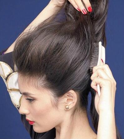 第一步》》》使用尖尾梳把脑勺的秀发刮蓬松,让你整体的秀发看起来蓬松感不错。
