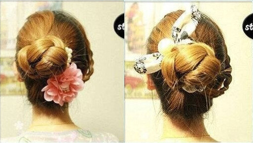 最后加以自己喜欢的头饰加以装饰就可以了,一个蓬松又不经意的韩式花苞头就轻轻松松地打造出来了,看起来尽显甜美优雅范,十分有感觉。
