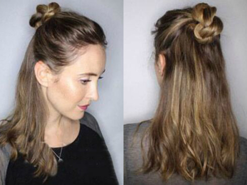 最后我们可适当将花苞头拉扯得蓬松一些会更有立体感,还有不要忘记打理一下你的发尾。