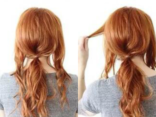 首先,将头发两侧的刘海与脑后的头发区分开来,扎一个低马尾,之后从的一侧的头发中取出一小束头发。