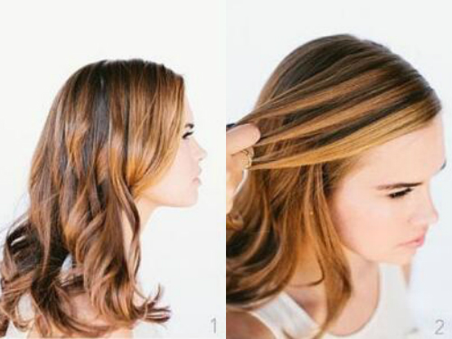 首先,我们要将头发卷烫一下,加强发型蓬松感,然后将刘海分成三小束头发,准备编发。