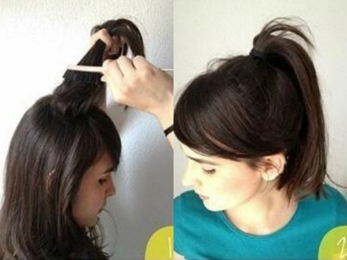 用梳子梳理全头头发,然后抓起顶部的头发,使用梳子倒刮它,让其变得自然蓬松。接着将头发随意扎起,变成一个高马尾,四周的头发不必扎得太牢,这样才能增加发量。