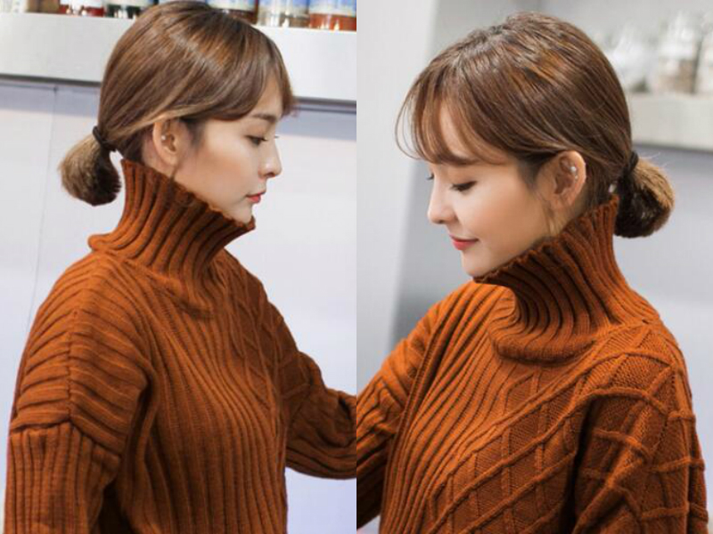 就算是短发也可以扎马尾辫哦,如妹子所示一样,把及肩的短发全部捋到一起,用橡皮筋简单的绑成一个小发束,贴垂在脑后看起来可爱又精致,额前的刘海随意拨散开来,整个造型给人一种知性又干练感觉。