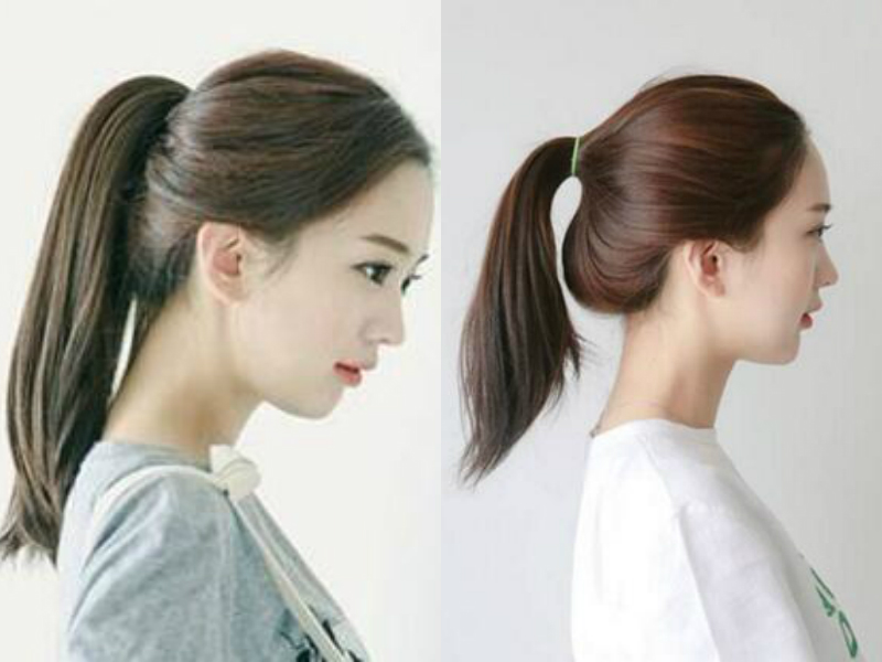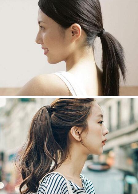 马尾的扎发看似简单却不简单,每次看别人扎的马尾都很好看,特别令人羡慕,大家可以看到右边女生扎的马尾,很整齐丝毫没有凌乱感,但是马尾稍低感觉不够活泼精神,小编建议大家像左边女生这样扎高马尾,两颊再留点散落的发丝,看起来就会既减龄又简单好看。