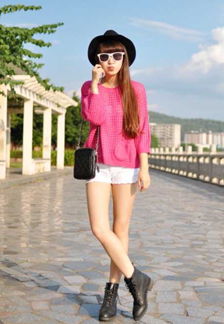 一副有点卡通的粉墨镜,很Q哦,长长的黄棕色直发拨到一边,增添了几分妩媚,嘟起的小嘴更增添了可爱感哦,可爱中又不失妩媚的一款长直发。