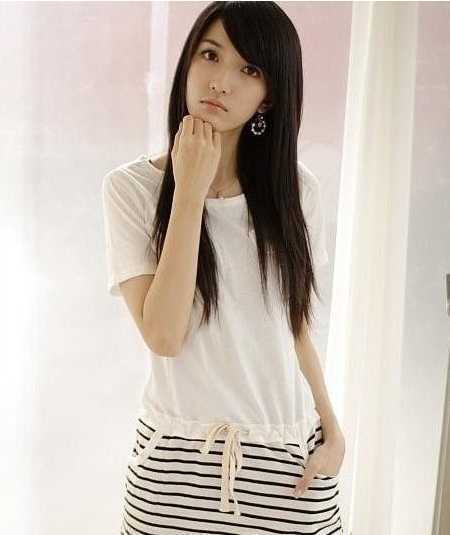 斜刘海,甜美有没有,文静的感觉,乌黑的头发,看起来好舒服,健康美丽,很清纯哦,美。
