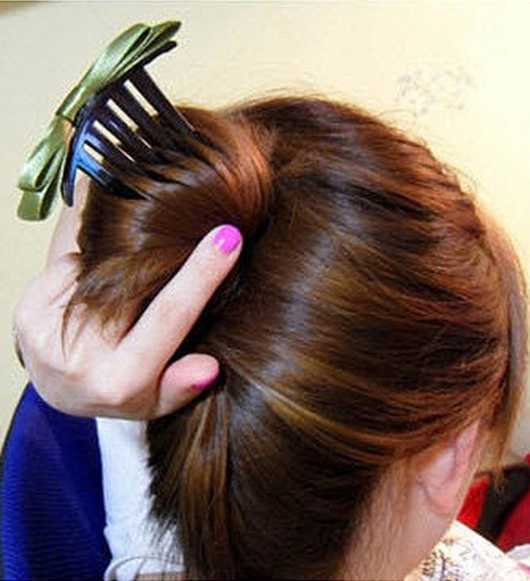 然后再用漂亮的发夹把刚卷好的头发固定好,而且还可以当发饰用哦。