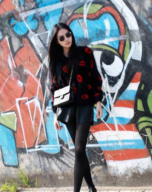 搭上复古的墨镜,显得酷酷的,发梢处的酒红色,时尚又不张扬。