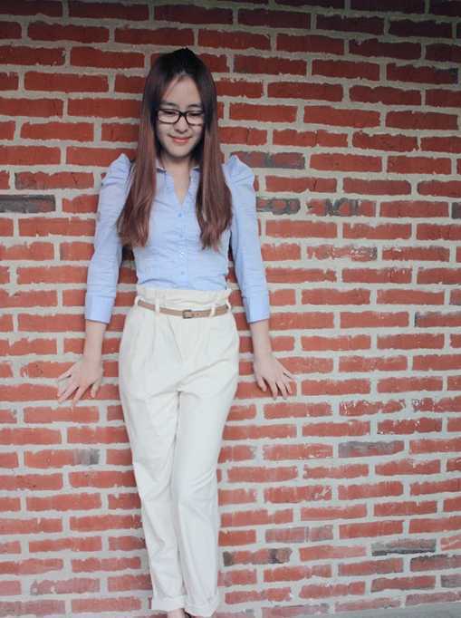 而且两边长长的发丝也起到修饰脸型的作用,搭上眼镜,OL范,增添了干练气息又不失甜美。