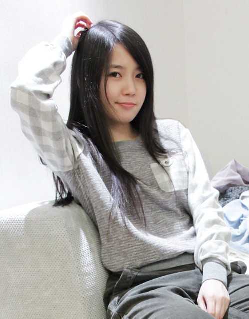 斜刘海+长直发,乌黑亮丽的发色,将一个清纯小女生完全展现出来了,一个浅浅的笑容,更添甜美气息,青春甜美的邻家小女生形象,很美。