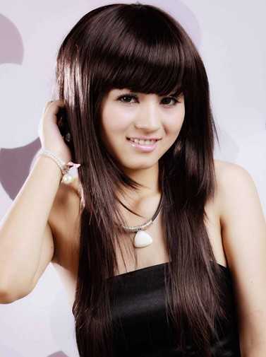 很清新的一款层次直发,斜刘海打造,甜美感十足,两颊有着层次分明的头发铸造了时尚,浅棕色的发色更是潮流哦!