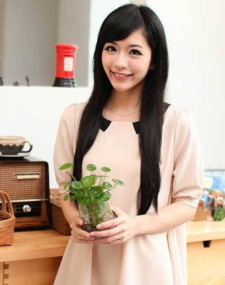 一头自然黑的发色,衬托着相当好看,具有层次感的设计更是增添了时尚,斜刘海打造,两颊长长直发,搭在肩上,很柔美!