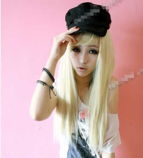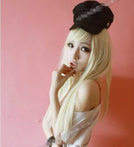 这款假直发,十分的耀眼哦!米白色的发丝,微曲的齐刘海,直直的长发垂落胸前,飘逸感十足哦!很有欧美女王气质哦!