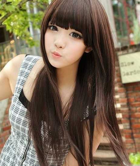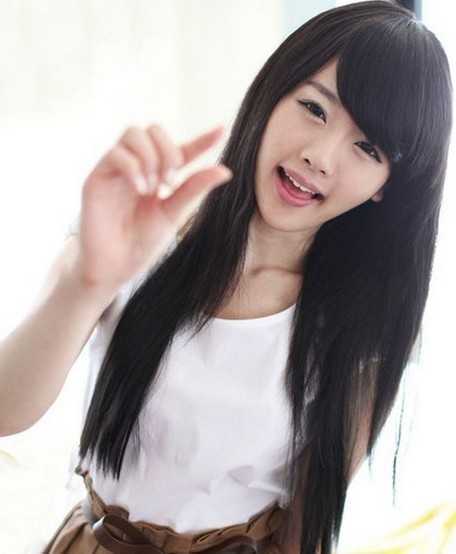看上去第一眼,这样的长直发带给人甜美感觉,前面剪齐刘海,倍添甜美气息,经过染色的发丝,更是充满了时尚感,夏季流行的长直发!
