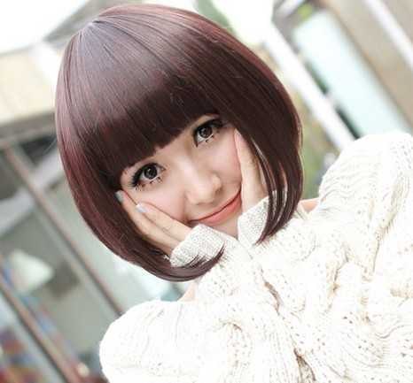 超可爱的波波头短直发,前面剪齐的刘海,看上去很甜美哦!棕红的发色,倍添潮流气息,两颊制造出来的内扣发尾,瘦脸+减龄,超赞的短直发,散发出淑女味道,出街十分抢眼球哦!2013最流行、大热!