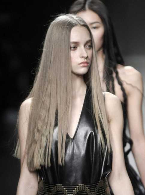 欧美范超浓郁的直发发型,亚麻色的染发让整个发型设计带入最时尚系列,发尾经过整齐的修剪下显的乖巧灵活,中分露额头打理,凸显女生自信清秀的气质。