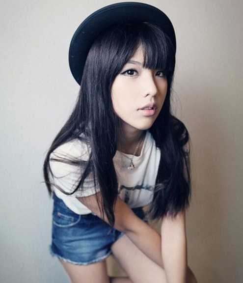 柔顺自然黑的直发,在初秋季以清纯不俗脱颖而出,齐刘海搭配时尚的爵士帽子显得十分帅气优雅,简约的发型设计却打造出一个个性的女生形象,很有时尚气质。