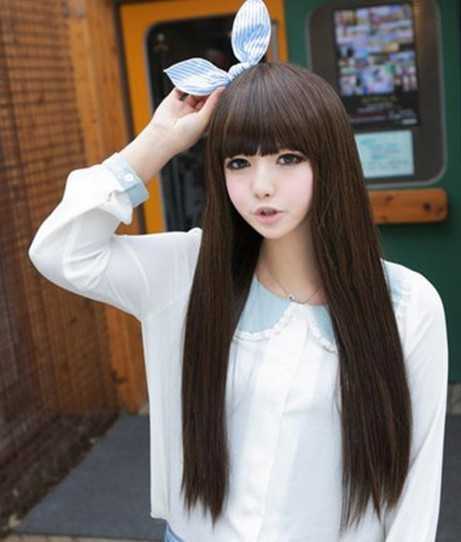 超卡哇伊的女生,一款长长的直发发型,迎来了初冬最甜美的一面,柔顺感的发质没有过多的张扬感,而齐刘海与顶部的蝴蝶结发箍,又是可爱的最好体现。