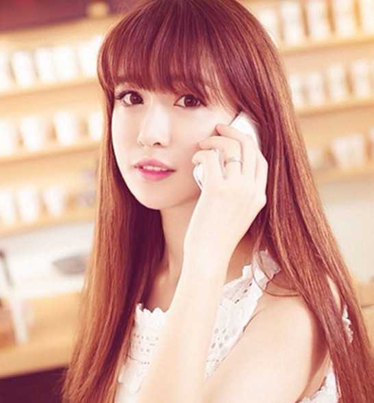 彰显唯美小浪漫的直发发型,绝对是清纯妹子们的首选发型,微微内扣的齐刘海,映出无辜的大眼,染上个棕黄发色,时尚而亮丽动人。