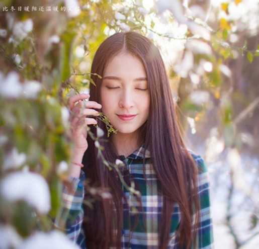 在阳光照耀下的棕红直发发型,显得无比的好看唯美感,选择气质中分的刘海来对圆脸作修颜,搭配格子衬衫,超甜美写意。