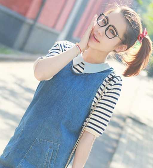中长直发侧扎的马尾发辫,看起来相当的俏皮利落,无刘海的衬托下,衬托出娇俏的女生脸蛋,搭配黑色眼镜框,小文艺范哦!