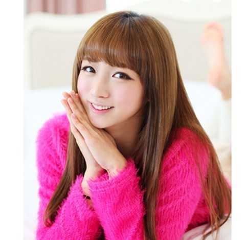 这款长直发发型,厚重内扣的齐刘海,加上两边的鬓发,很好的修饰了脸型,柔顺的散放在两边的头发,还衬托了女生淑女的气质。