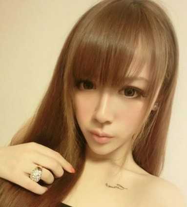染上棕色颜色发丝,不仅显肤色,还倍添潮流,剪齐的刘海,凸显出大大的眼睛,全部的头发往一边搭,超迷人的。清新唯美。