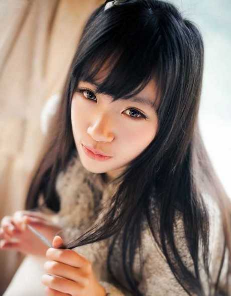 同样是以黑色为主的长直发发型,更多展示出来的是自然优雅的感觉,微微斜分的短刘海头发,把女生衬托得温柔而纯美。