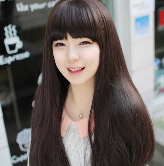 较甜美的女生,披上一头顺滑的长发直发发型,带少许蓬松的直发设计,唯美而优雅地呈现出来,搭配碎分一角的齐刘海,可爱极了!