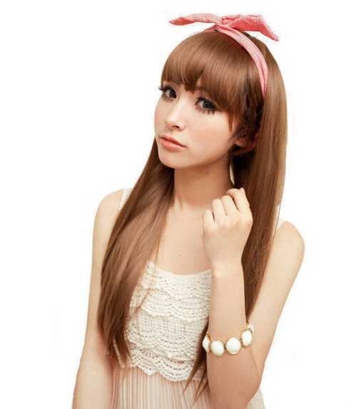 这一款女生长直发发型,萌妹子也许比较钟爱吧,棕黄发色的直发,时尚个性十足,搭配兔耳朵发饰,甜美又精灵可爱。