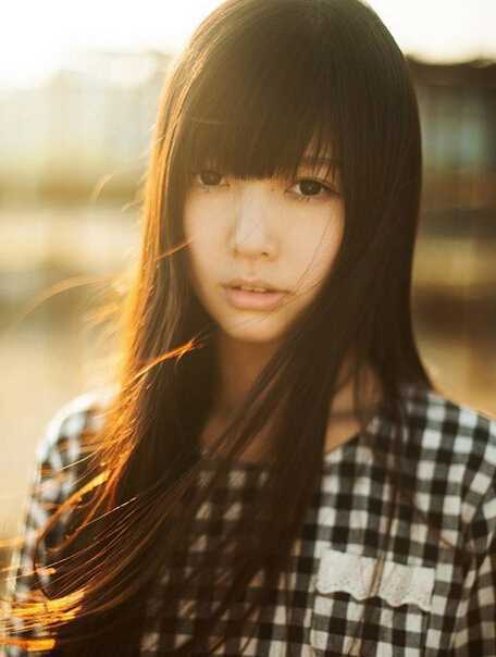 遮住眼脸的齐刘海修剪,表现出一种优雅的美态,轻盈的长直发发型,也是女生迷人清纯的最佳法宝哦。