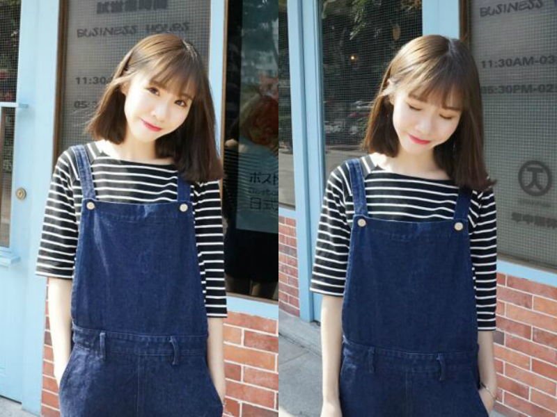 不得不说长直发与空气刘海搭配起来竟是如此和谐,稍微有点内扣弧度的刘海轻轻的悬挂在额前,看起来清爽透气,柔顺的长直发从头顶自然滑落,一侧贴着脸一侧夹到耳后,更显甜美大方,发尾隐约可见层次线条,显得很是别致。