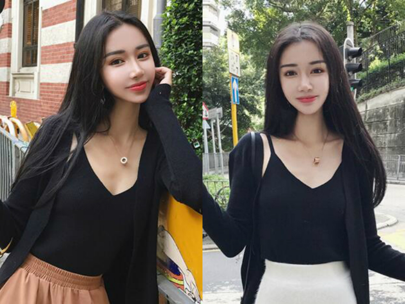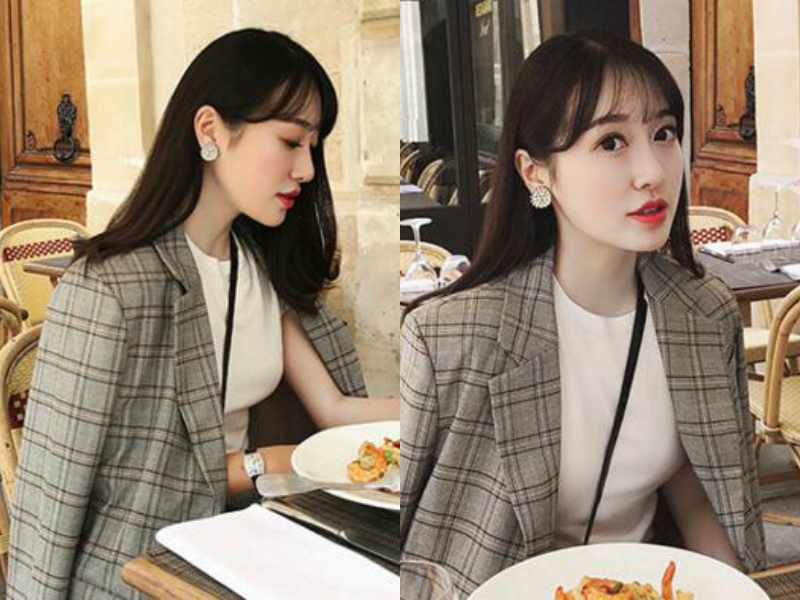直发是最简单自然的发型之一,女生一头纯黑的直发随意披在肩头,披肩的长度刚好,既扎得起来,放下也不会闷热,夹起一侧至耳后,露出优美的脸部线条,加上轻柔的空气刘海的修饰作用,更加突出女生精致的五官。