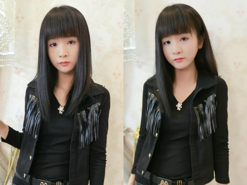 同样黑色发色的一款直发发型,修剪平齐的刘海为妹子增添一丝可爱气质,给人以亲切感,顺直的发丝从头顶滑落并垂落至肩前,纯黑的发丝不仅衬得妹子肤色白净,变现出妹子单纯美好的一面,这些的职场ol更给人以可信赖感哦。