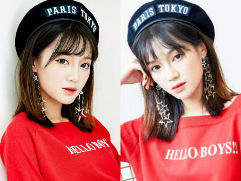 清爽利落的直发,加上轻盈灵动的空气刘海就很有清纯的气质,再戴上夸张的耳饰,印有字母的帽子,时尚新潮中更加凸显出妹子嫩嫩清纯的气质。
