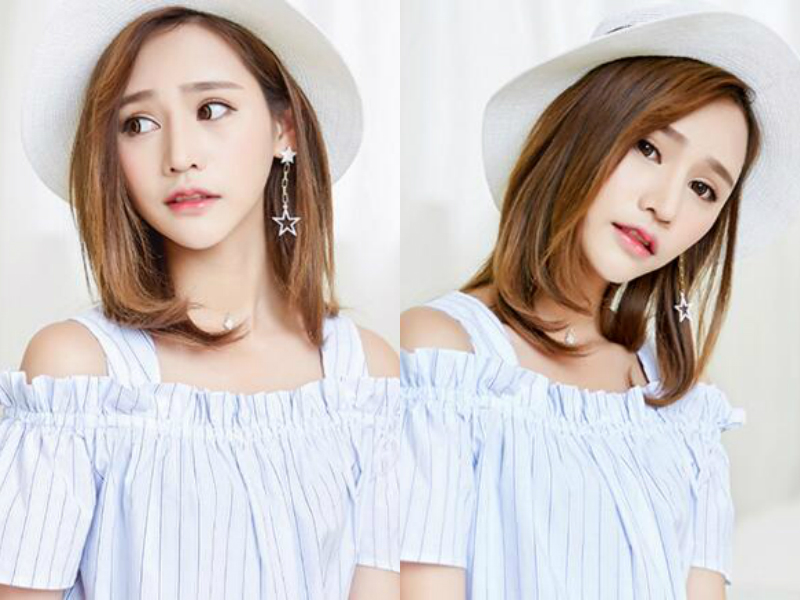 发尾修饰得极具层次感的及肩直发,配合三七分的刘海修饰出完美的小V型脸,一件一字领的上衣,耳间摇摆的星星耳饰,优雅淑女的感觉。