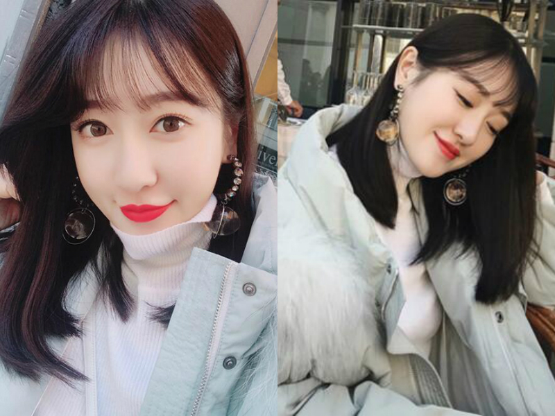 仍然是一头黑色的及肩直发,发尾向外翘稍稍凌乱带着随意,文艺女青年的感觉,把一边头发轻轻地别到耳后,低头的一瞬温柔而端庄,简直美呆了。