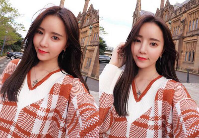 没有过多装饰的中长直发发型,把头发分成两半拨在胸前,两侧的中长直发自然垂落在肩上,柔顺服帖的头发特别令人羡慕,戴上帽子,修颜的同时衬托出女生甜美的感觉。