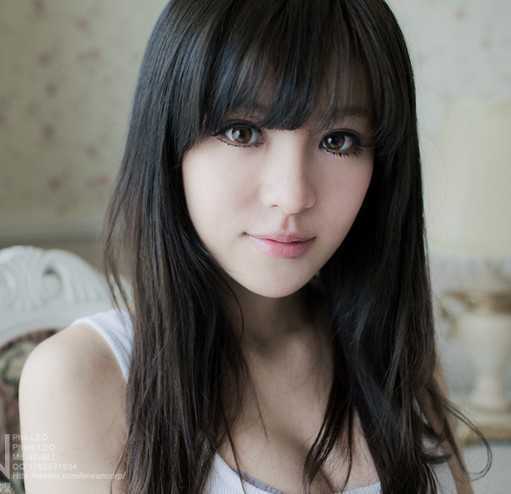 有点漂染的中长直发,给人一种甜美柔和的感觉,向内有点卷的刘海,给人小甜美的气息,也是装萌扮嫩的法宝。