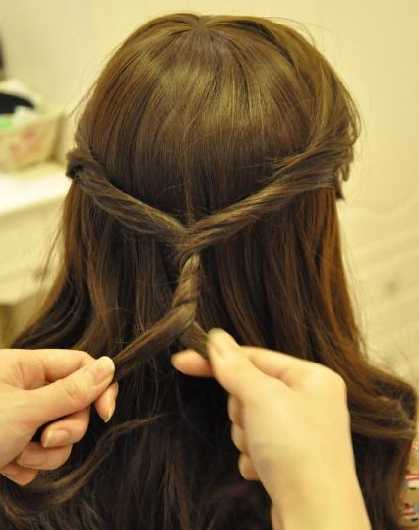 将交叉在一起的两小束头发缠绕在一起,力度适中就可以了,